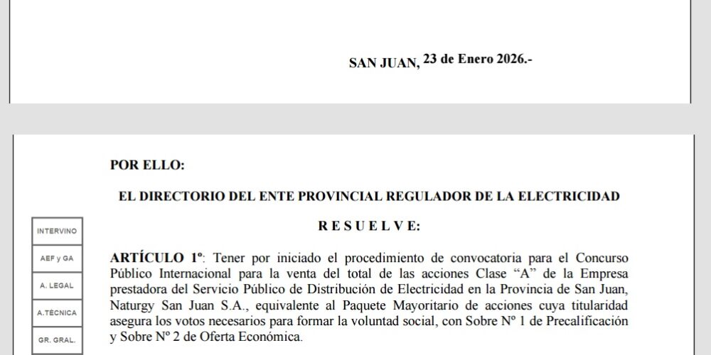 El inicio de un concurso público internacional para la venta de las acciones de Naturgy San Juan S.A. generó incertidumbre sobre la continuidad de la empresa en la provincia. Sin embargo, este proceso no responde a una decisión voluntaria de la firma española ni a … Sigue leyendo El EPRE pone en marcha la salida de Naturgy: ¿Se va realmente?