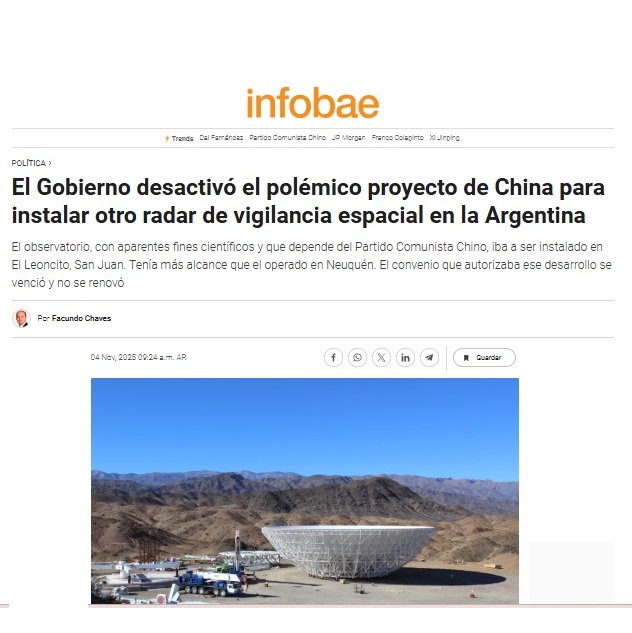 La iniciativa, considerada «polémica» por el medio, fue desechada por la administración libertaria tras una revisión del convenio que concedía a China el control de esas instalaciones, y que se suscribió durante el gobierno kirchnerista. La publicación, firmada por el periodista Facundo Chaves, contiene un sesgo ideológico en la decisión del gobierno nacional, alineado con Estados Unidos, que mira con especial atención a la instalación científica por llevar el sello del Partido Comunista Chino.