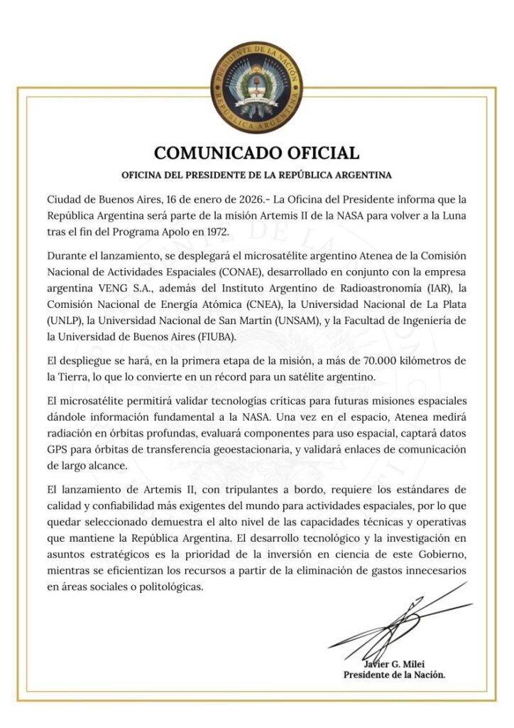 La controversia se originó tras el mensaje oficial en el que el presidente Javier Milei confirmó que Argentina enviará el microsatélite «Atenea» a la órbita lunar. En dicho texto, el Gobierno sostuvo que la investigación en asuntos estratégicos es la prioridad de su gestión «mientras se eficientizan los recursos a partir de la eliminación de gastos innecesarios en áreas sociales o politológicas».