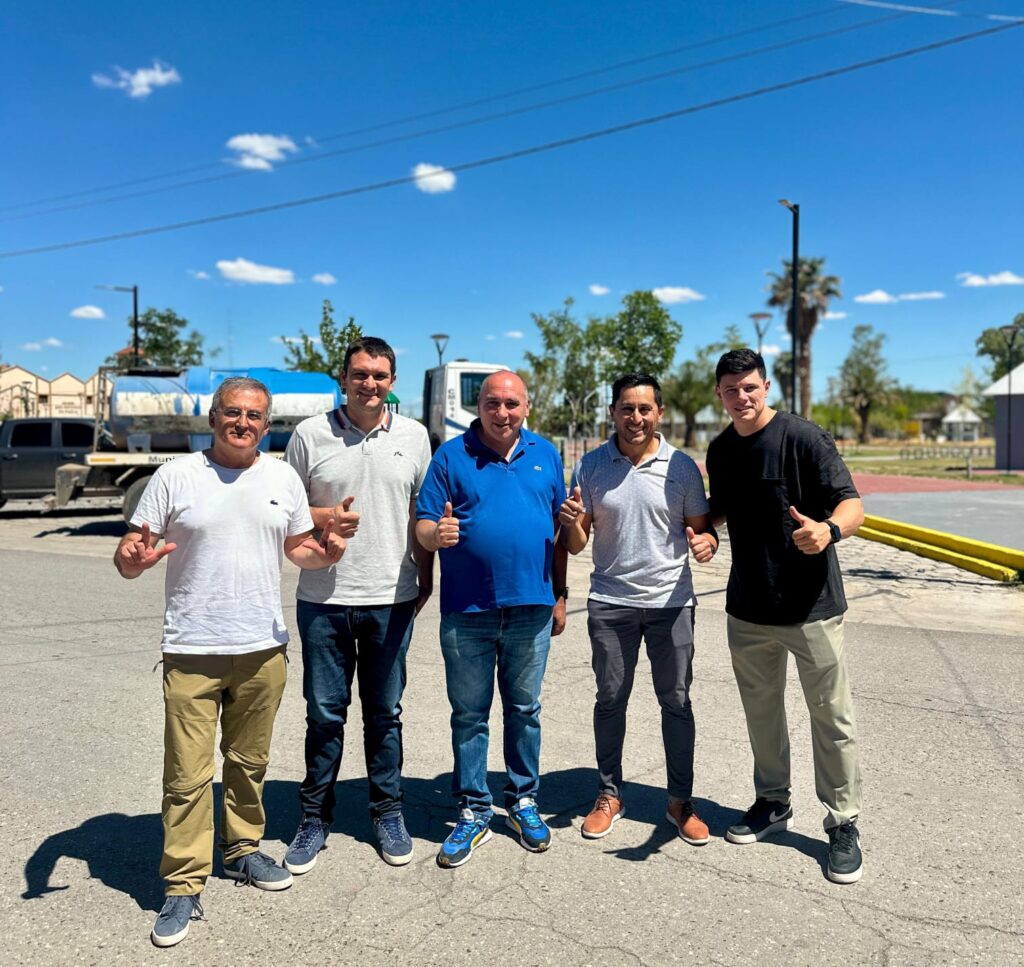 El lunes se fueron todos a la plaza de Sarmiento, frente al municipio, para tomarse una foto grupal con la flamante incorporación. Además de Peluc, estuvieron el senador Bruno Olivera, el diputado provincial Fernando Patinella y funcionarios violetas de primera línea.