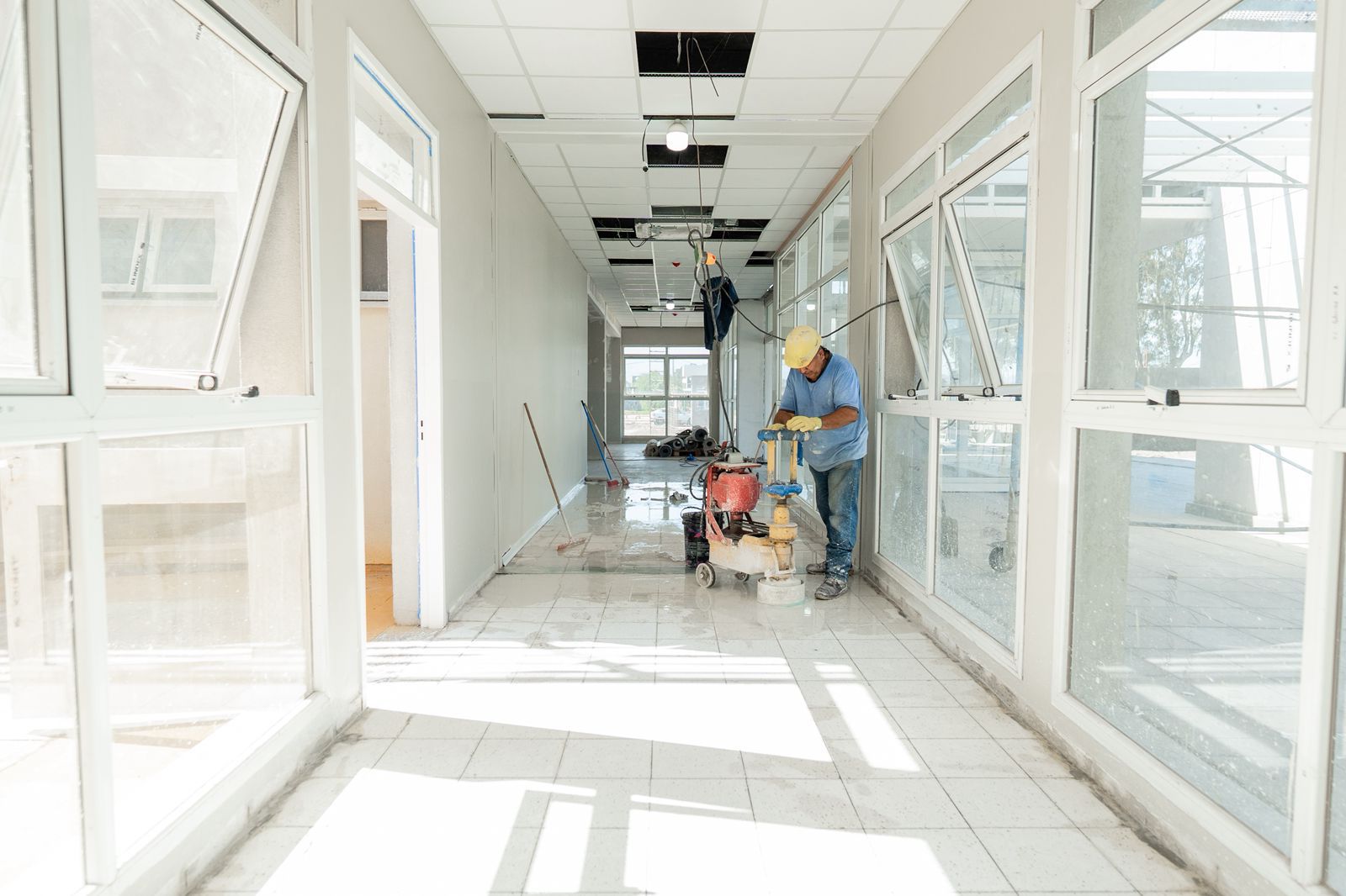Un equipo de 100 personas, integrado por operarios, técnicos y especialistas, trabaja de manera simultánea para sostener el ritmo de las intervenciones. Las cuadrillas ejecutan tareas de terminación que incluyen pintura general, pulido de pisos y el montaje de carpinterías.