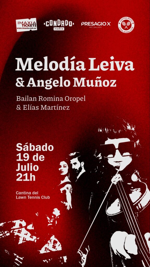 La reconocida artista Melodía Leiva volverá a desplegar su talento este sábado 19 de agosto en la cantina del Lawn Tenis Club, a partir de las 21, con un espectáculo de tango imperdible, acompañada por músicos de alta jerarquía como Ángelo Muñoz y Esteban Muñoz (el duende de la guitarra) y la danza de dos consagrados como Romina Oropel y Elías Martínez.