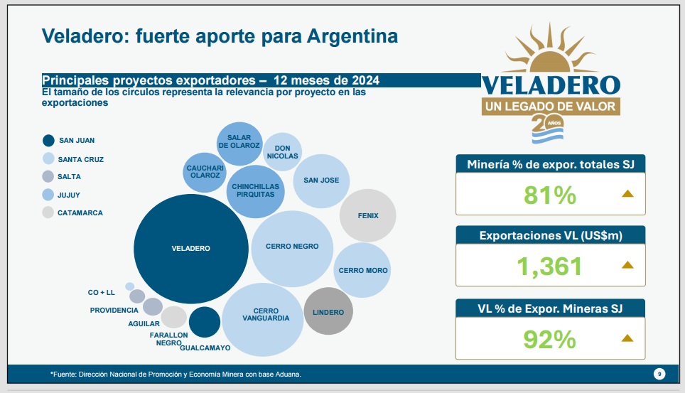 En 2024 Veladero fue el principal exportador minero de Argentina, de acuerdo al reporte de Bristow. Superó los 1.360 millones de dólares. ‘Veladero es hoy una mina distinta producto de 6 años de una estrategia clara, ejecución disciplinada e inversión sostenida’, sostuvo el CEO de Barrick. La fecha coincide con la venta del 50% a Shandong Gold.